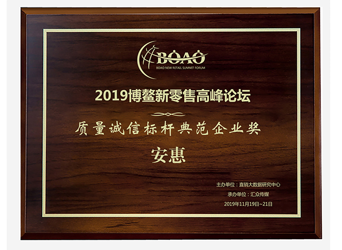 2019博鰲新零售高峰論壇“質量誠信標桿典范企業獎”